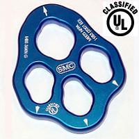 Rigging plates are indispensable and help make setting up a rope system quicker and safer. SMCs Rigging Plate is half the size of the bigger plates on the market yet is just as strong. Features a single, large circular center hole that accepts numerous connections simultaneously plus five oversized, ovalized holes that are each designed to handle up to 2 large rescue. Holes are individually numbered to make it quick and easy to organize connections. All edges on the SMC Rigging Plate have been contoured so that they are easy on rope, webbing, carabiners and other connectors. CNC machined from ½ thick aircraft quality aluminum and then anodized for quick identification and additional resistance to corrosion. Weighs 11.4 oz, dimensions: 7 x 5.3 x 0.5. Strength 11,690 lbf 52kN. Catalog # NFPA130005