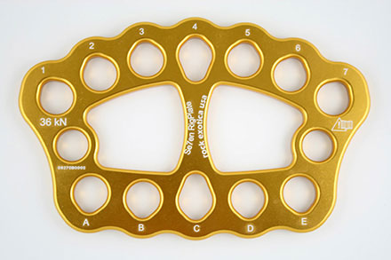 Full-sized plate with all the holes you'll need. You can even connect several side-by-side. Relatively light for its size, it's got 7 holes across the top and 5 on the bottom. There are also holes at both sides in the middle. These can be used to connect two or more rigplates together side-by-side if needed. Weight: 13.3 oz (376 gm). Breaking Strength: 36 kN