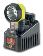Primary hand-held light source with unbreakable ABS body and polycarbonate lens. Combination pistol grip/lantern handle quickly converts to multiple positions. Includes one handed safety switch operation, double shock mounted battery compartment and black lanyard. Available in black and yellow.