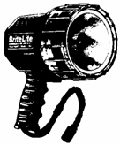 Watertight to 600’(183m). Compact 6 volt, 7 watt, 60,000 candlepower primary hand held light source. Includes patented dual filament Xenon back-up safety lamp with 60 hours total lamp life, patented shock absorbing internal battery module that protects 4 D-cells from hard abuse, and an integral pistol grip handle with lanyard. Available with Laser Spot™ (Modified Spot™ optional) quick change reflectors. Operates 11-12 hours on 4 D-cell alkaline batteries (not included). Special buoyancy control ballast allows BriteLite to float beam up for boating use or sink as desired for scuba diving. CSA, MSHA approved non-incendiary. Colors: black, lime green, Coast Guard orange, yellow. Length: 6 1/2”(16.7cm). Diameter: 4 1/2”(11.5cm). Weight: 2.5 lbs.(1.1kg).