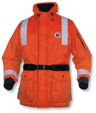 on hood, catalog #MA7026 ·Slash style hand warmer pockets ·Knit wrist cuffs and waist closure help keep you warm ·Lower leg zippers provide easier donning ·Sizes: S, M, L, XL, XXL, XXXL (see following size chart) ·Color: International ·USCG Approved Type III Catalog