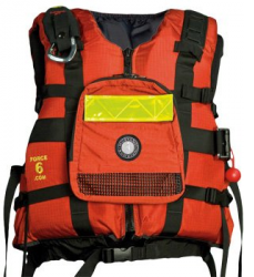 The MRV100 SR is a high buoyancy (26lbs) vest for rescue professionals involved in boat and shore operations or medium to high risk swift water environments. Designed to meet the Personal Protective Equipment (PPE) needs of rescuers that face the challenges of moving water, these IRIA Certified vests are made of rugged, high visibility rip stop nylon and contain extra flotation to combat the reduced buoyancy effects of turbulent water. An integrated structural harness and single piece over-the-shoulder foam design provide extra strength, structural integrity and body protection. Multiple adjustment points provide a secure fit that prevent ride up and a "live bait" quick release belt helps the rescuer to escape dangerous situations. Fast Tabs on both shoulders act as easy attachment points for accessories such as knives, scissors or strobe lights. Features: