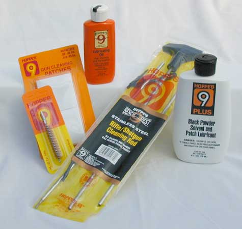 Cleaning Kit Items: Gun Oil, Black Powder Solvent, Stainless Steel Cleaning Rod, Bronze Bristle Cleaning Brush, Cleaning Patches (doesn't include bag or case).