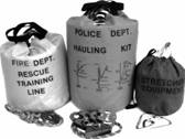 Identify the contents of your rope equipment bags at a glance; one inch high legends permanently attached to the bag. We also offer a set of three hauling system illustrations, 2:1, 3:1, and 4:1 as shown on page 94. No set up charge, no minimum quantity and best of all no wait. Your legend can be affixed and shipped in a matter of hours. Up to six lines (equipment bags 3 lines) and up to 18 letters per line. To order specify your choice of words (or illustrations) by line. Illustrations count as 3 lines. Custom bag labels can only be applied to orange, yellow or red bags. To order, specify your wording by line. See page 77 for rope bag selection.