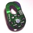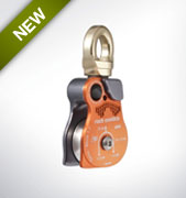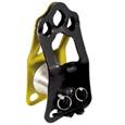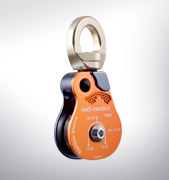 A smaller version of the original. The shape of this pulley allows the use of prusik hitches as ratchets or as a belay during the raising of rescue loads. It features an aluminum sheave with sealed ball bearings. The tread diameter is 1(2.6cm), and it accommodates rope up to 7/16(11mm). Strength: 4000 lbs.(1814kg). Weight 2oz.(57g).
