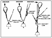 A-Simple 2:1 B-2:1 with Ratchet C-2:1 Pulling Second Rope |