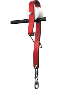 Cable riding wheel for use in ski lift evacuation. One way gate allows easy clip in to ski lift cable. Its 2"(5.1cm) wheel diameter will accept most cables. Includes screw link and swivel shackle for connection point. Maximum load rating 1100 lbs.(500kg). Weight 3.8 lbs.(1.7kg). Made in France.