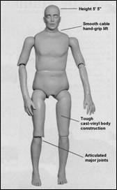 Simulaids Adult and Child Rescue Training Manikins The Rescue Randy™ Adult Manikin is a rugged, fully articulated rescue manikin. Rescue Randy™ is used in training programs throughout the world. Replicating the weight and resiliency of a human body, he can be positioned to sit, lie, curl up or flex to facilitate realism in your rescue scenario. Randy is made of tough cast vinyl over a rust resistant steel frame. Weights range from 55 lbs.(25kg) to 165 lbs.(75kg). Rescue Randy™ is a 5’5”(166cm) tall Caucasian. Rescue Rudy™ is an African American. Water Randy was developed for YMCA water safety courses and allows adjustment to its buoyancy by adding weight to the abdomen. Juvenile Jennifer™ is a 4’(123cm) tall, 16 lb.(7.3kg), 7-8 year old sized youngster. She is articulated at all major joints. The manikins’ rugged construction will insure years of durability and usefulness. Jennifer is especially helpful for preparing personnel for child rescue where highly charged emotional factors come into play. Catalog #1338 Rescue Randy 55 lbs.(25kg) Manikin Catalog #1335 Rescue Randy 105 lbs.(48kg) Manikin Catalog #1344 Rescue Randy 145 lbs.(66kg) Manikin Catalog #1345 Rescue Randy 165 lbs.(75kg) Manikin Catalog #1388 Rescue Rudy 55 lbs.(25kg) African American Manikin Catalog #1385 Rescue Rudy 105 lbs.(48kg) African American Manikin Catalog #1386 Rescue Rudy 145 lbs.(66kg) African American Manikin Catalog #1387 Rescue Rudy 165 lbs.(75kg) African American Manikin Catalog #1326 Water Randy 40 lbs.(18kg) Water Training Manikin Catalog #1355 Juvenile Jennifer 16 lbs.(7.3kg) Manikin Catalog #1350 Rescue Cathy Newborn Manikin (Water Fillable) Catalog #1351 Rescue Timmy 3 Year Old Manikin (Water Fillable) Catalog #1352 Rescue Billy 6-9 Month Old Manikin (Water Fillable) Catalog #1112 Weighted Vest 20 lbs.(9kg) Catalog #1114 Weighted Vest 30 lbs.(13.6kg) Catalog #1115 Weighted Vest 40 lbs.(18kg) Catalog #1373 Carry/Storage Bag |